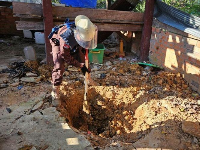 さて、当地においてJMASはCMACとともに、ベトナム戦争時や内戦時に残された地雷や不発弾の処理を行ってきました。現在のように交戦がリアルタイムで生じると、新たに不発弾やその他の爆発性戦争残存物(ERW)が発生します。そのため、これまでJMASとともに活動していたCMAC隊員の一部が、7月末以降、対処のために動員されるようになりました。