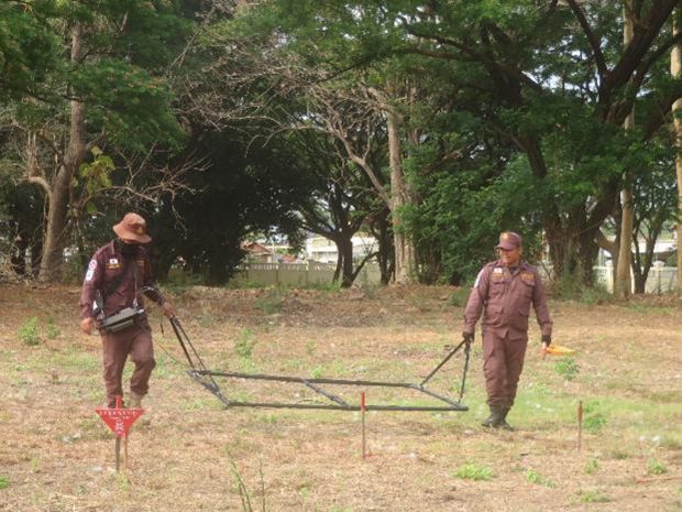 今は生々しい戦禍を残し、放置されている状態にある州都の別荘は、市民に開かれた公園へと開発されることになりました。それに伴い、この王族別荘の敷地において不発弾探査が事前に行われることとなり、JMASの事業が名誉あるともいえるその任務を担いました。公園として生まれ変わるまでには、まだまだ時間が必要ですが、自分たちの関わっている業務がカンボジアに貢献していることを再認識します。